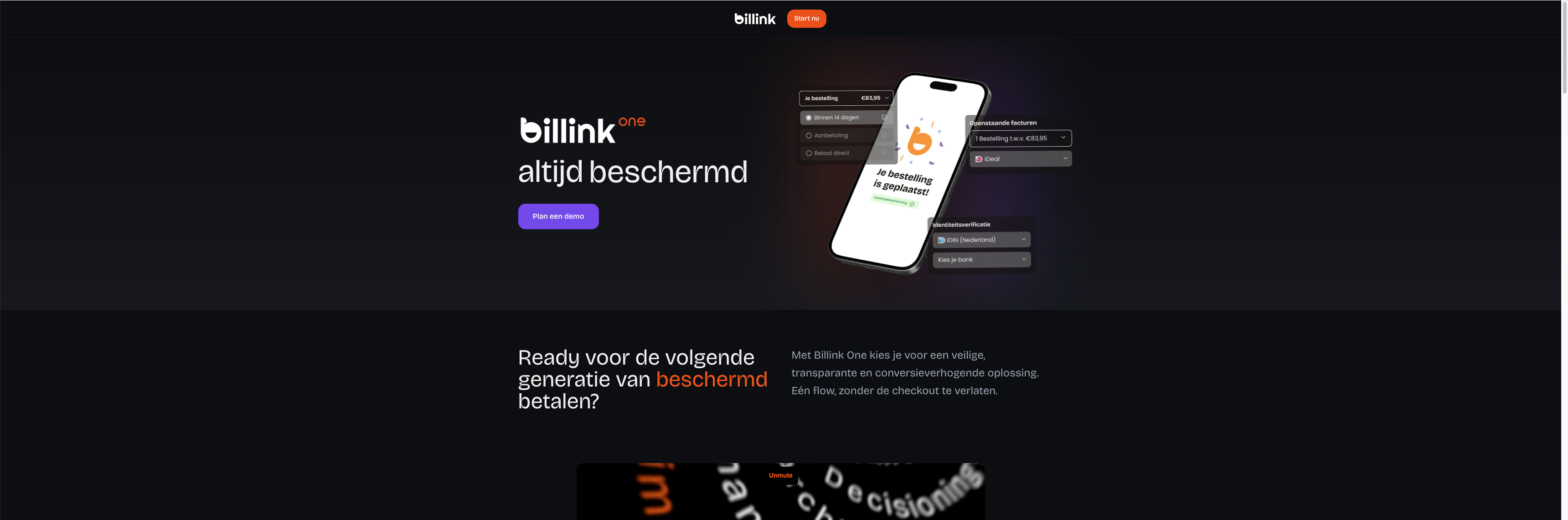 In 2025 hebben we onze zero-friction checkout Billink One gelanceerd. Met slimme technologie en realtime checks (zoals iDIN, adres- en leeftijdsverificatie) zorgen wij ervoor dat elke transactie verantwoord verloopt. Voor de consument betekent dit zekerheid, voor de webshop betekent dit 100% acceptatie en dus een verhoging in conversie.